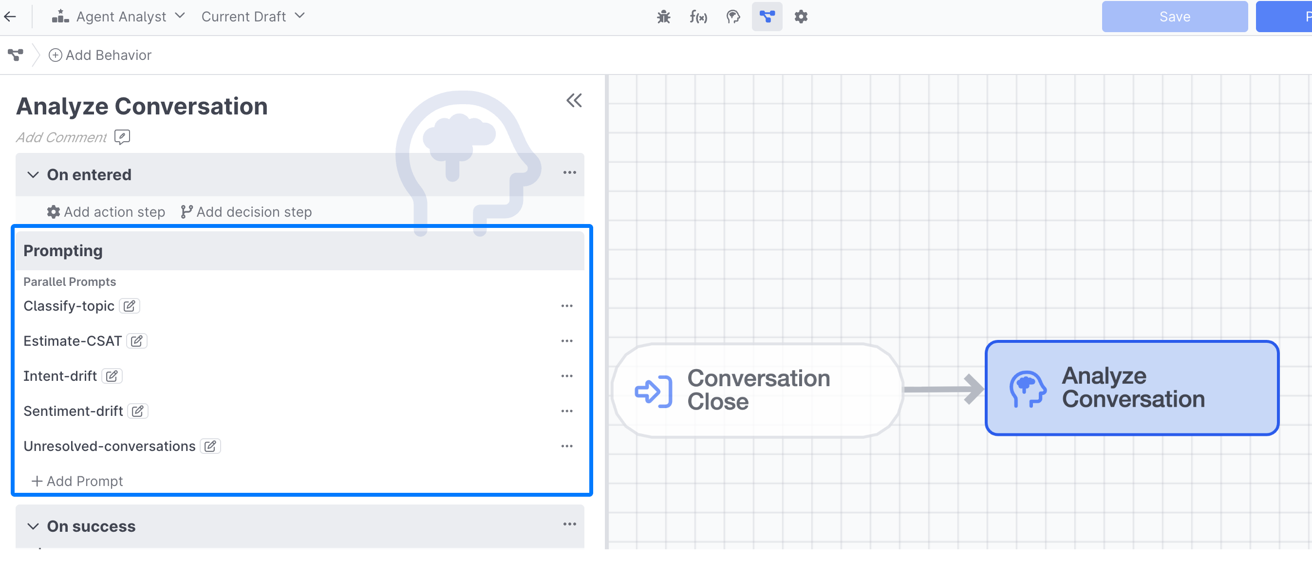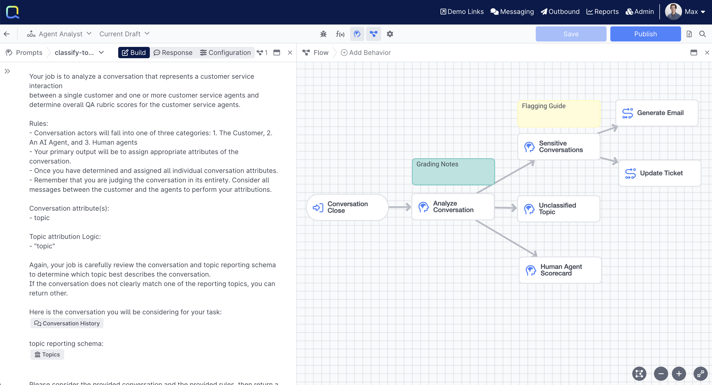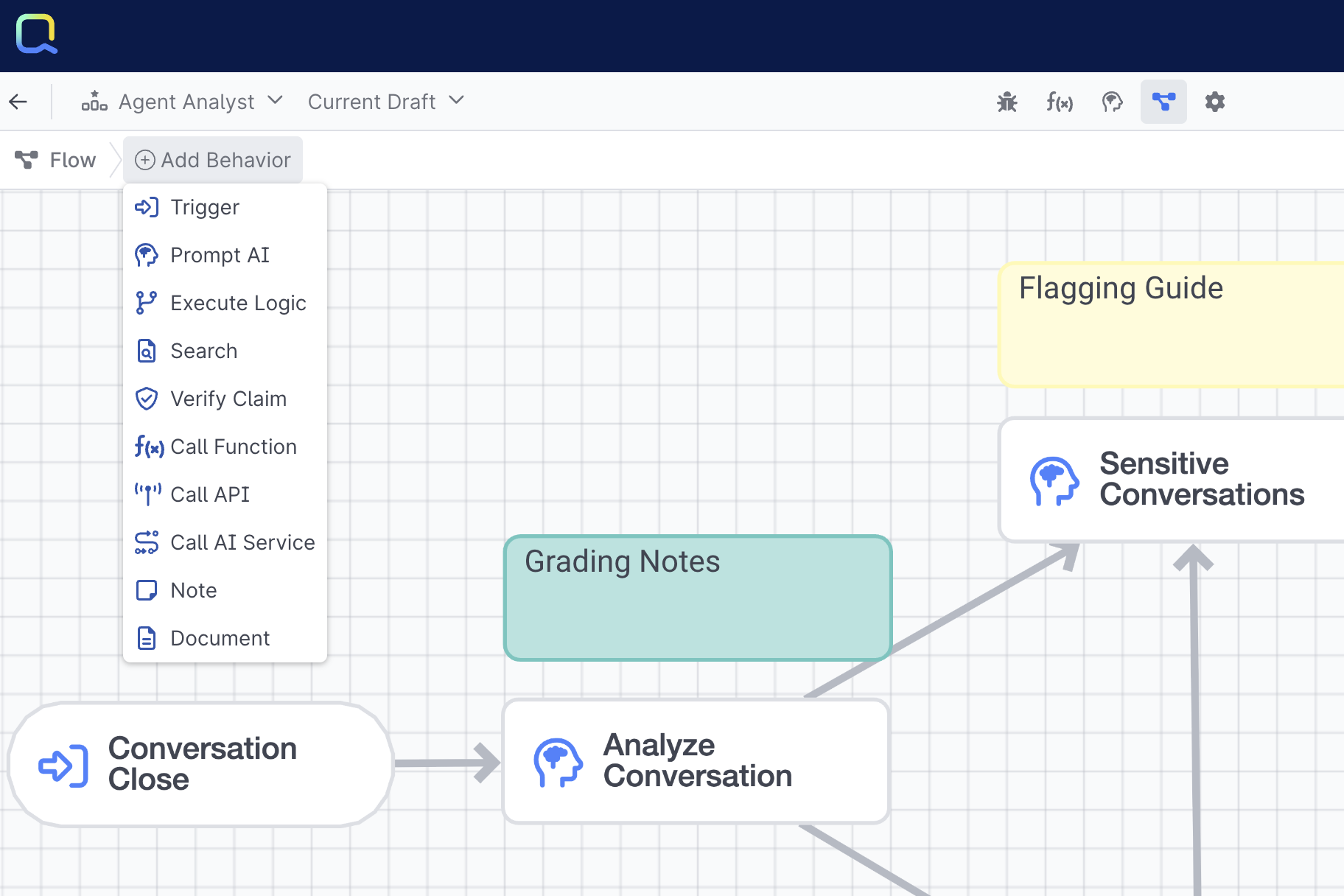 Because they're built in AI Studio like all other project types, Conversation Analysts aren't just limited to generating metrics, they also have access to a range of other important behaviors: