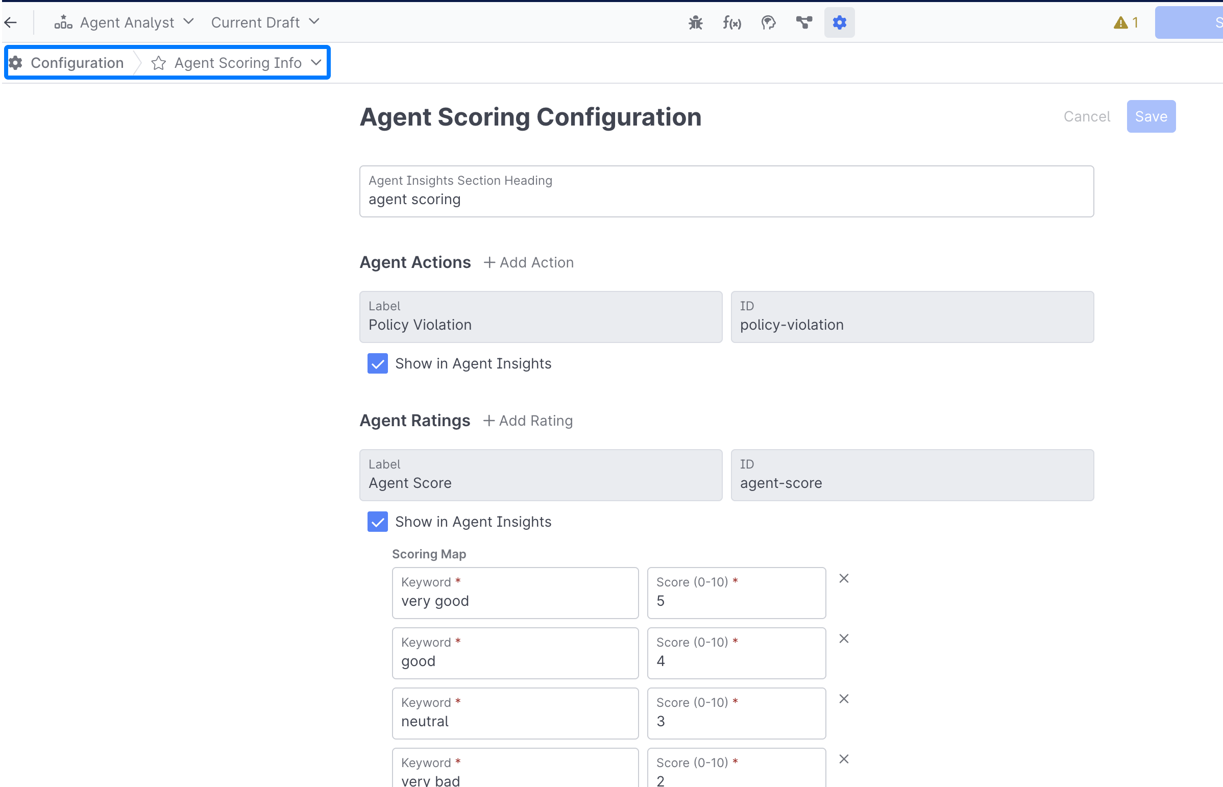 To get started, navigate to Agent Scoring Info in the Configuration Panel: