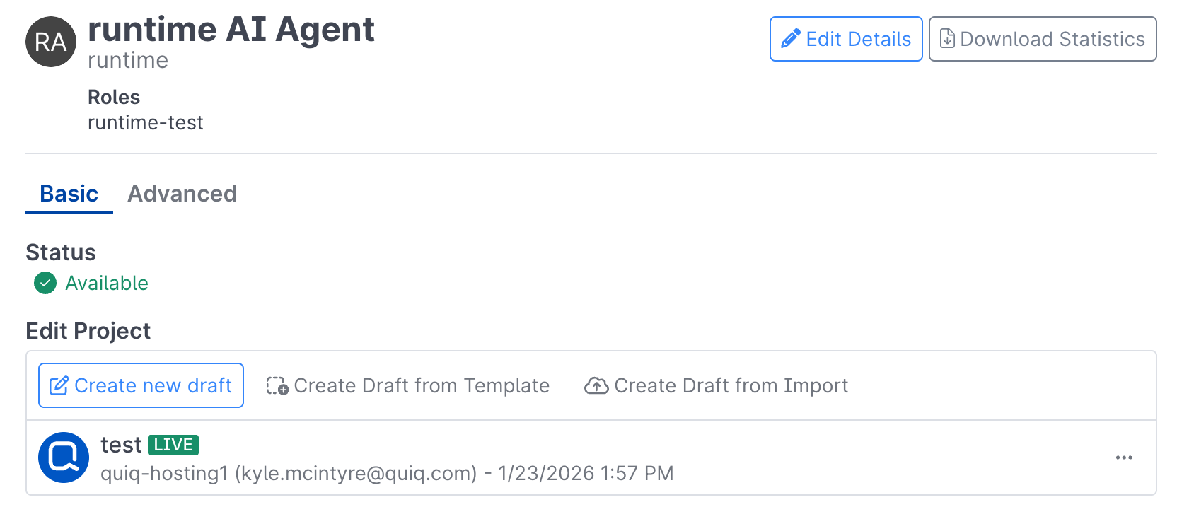 - Login to AI Studio and navigate to your AI Project, such as an AI Agent, and navigate to the Advanced tab
