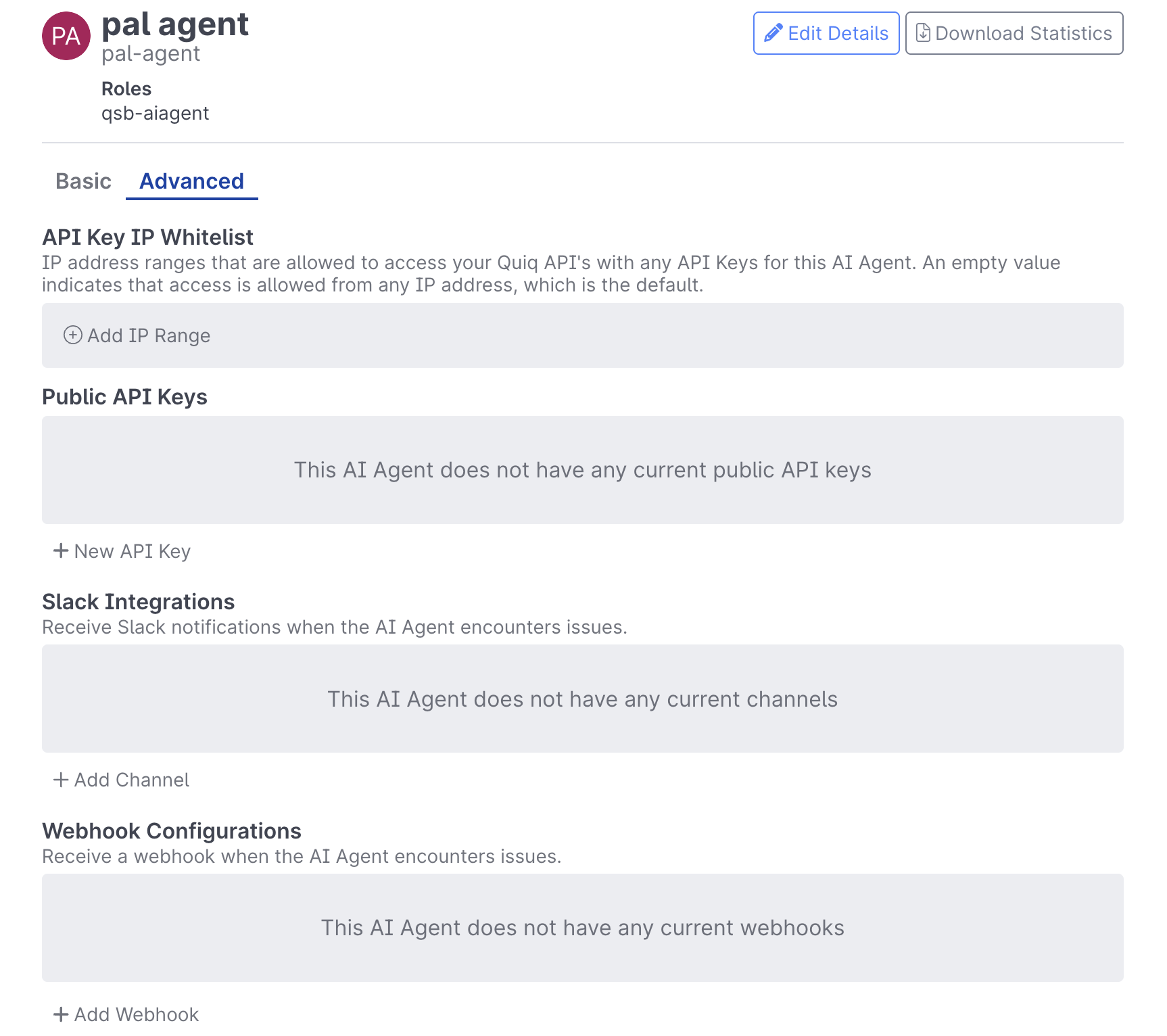 Webhook Configurations are available on the Advanced tab of the Overview page for any AI Studio project, or from Admin > Bots when viewing an AI Agent.